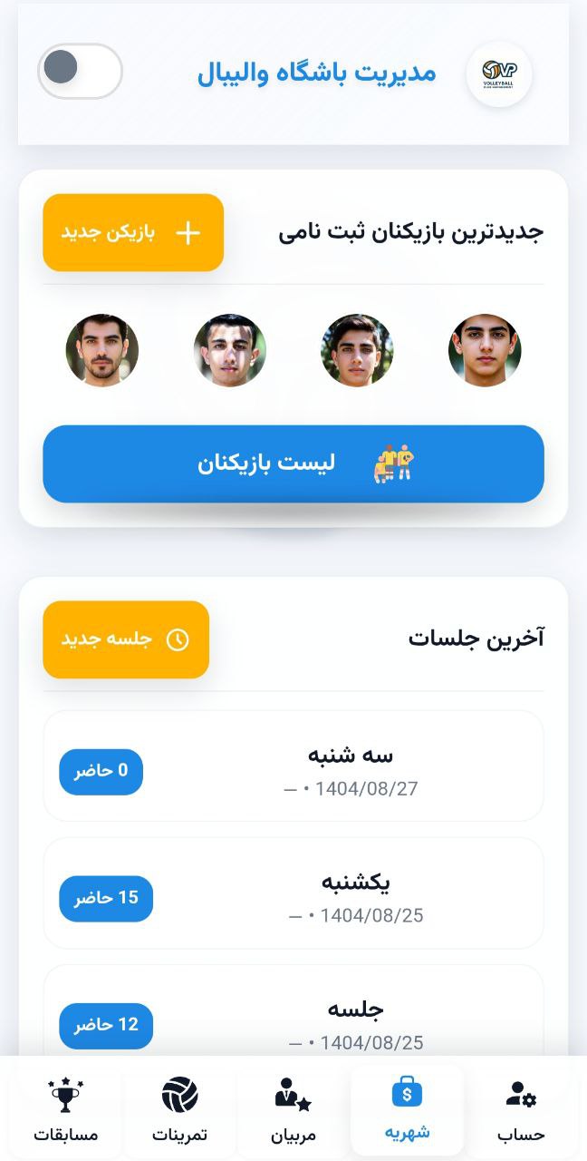 این یک اپلیکیشن فارسی است که مخصوص مدیریت باشگاهها و تیمهای والیبال ساخته شده. تمام چیزی که برای اداره روزمره یک باشگاه نیاز دارید، داخلش هست.